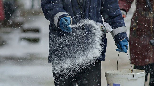 - посыпку тротуаров и пешеходных зон противогололедными средствами;